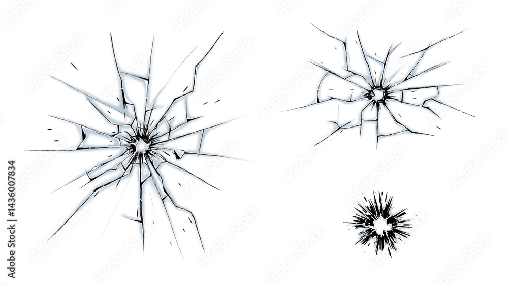 ガラスに撃ち込まれた銃痕の影ありイラストセット #1436007834