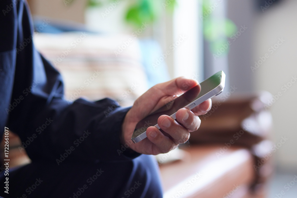 スマートフォンを操作する日本人シニア男性の手元 #1722661077