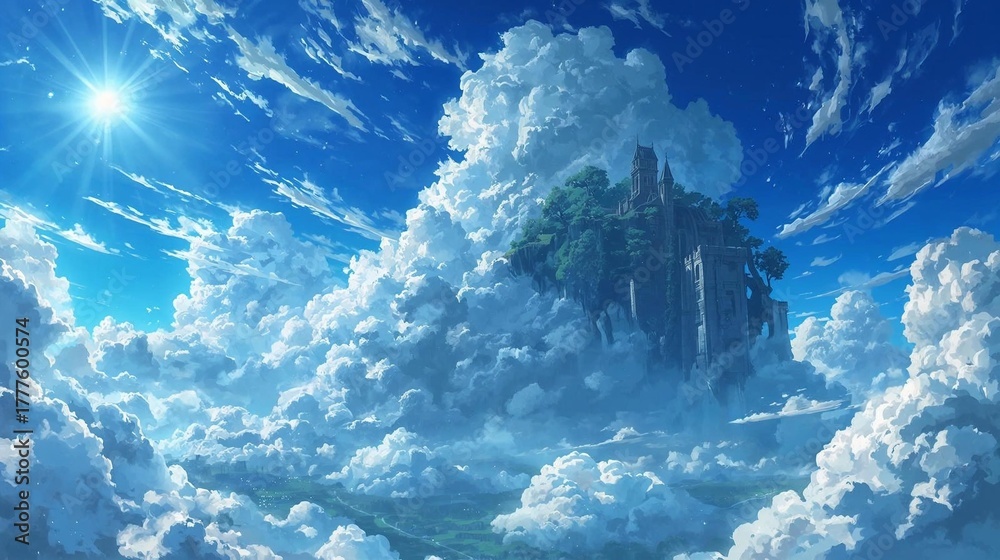 天空を翔ける夢:アニメ風・浮遊島と壮大な雲の物語 高解像度 プレミアム画像素材集:未来、祝祭、自然の美 #1777600574