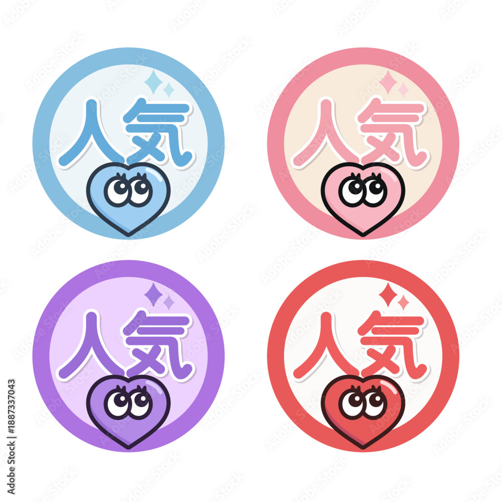 人気 バッジ 4色セット|ハートアイコン付き 円形デザインの販促ベクター素材 #1887337043