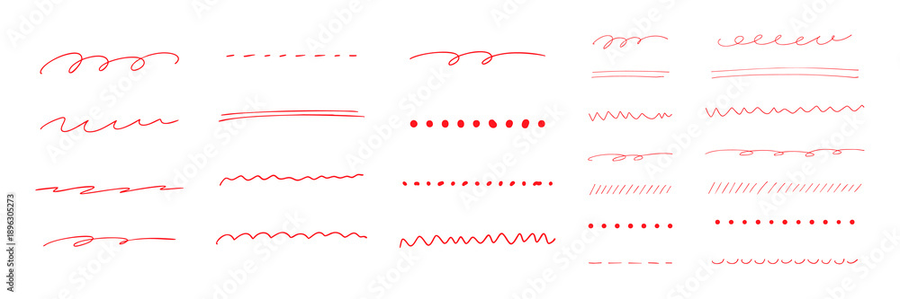 シンプルな手描きライン素材セット 赤 #1896305273