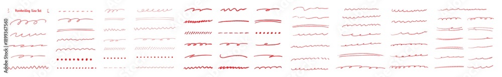 シンプルな手描きライン素材セット 赤 #1899367560