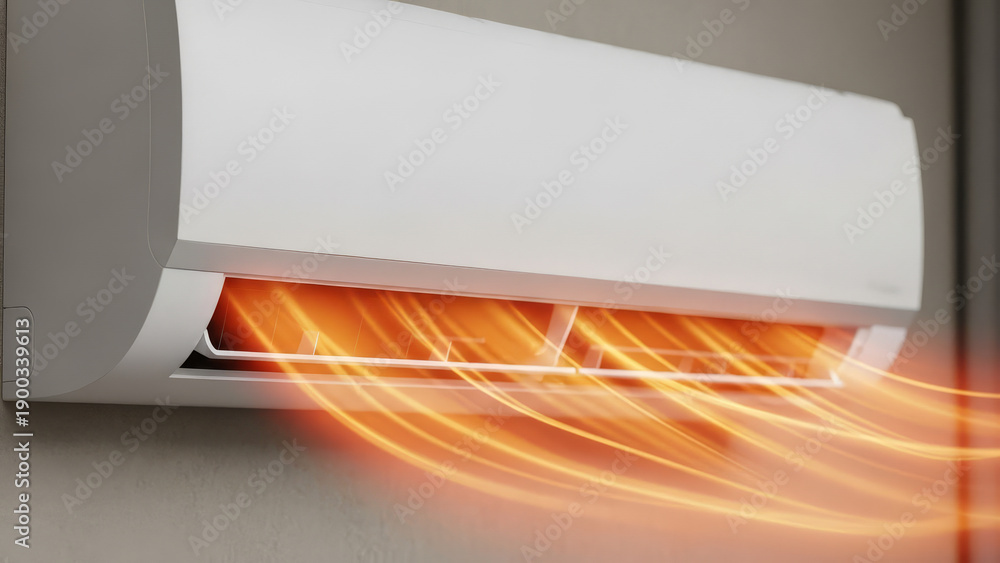 エアコンの暖房 送風イメージ 壁に取り付けられた室内機 #1900339613