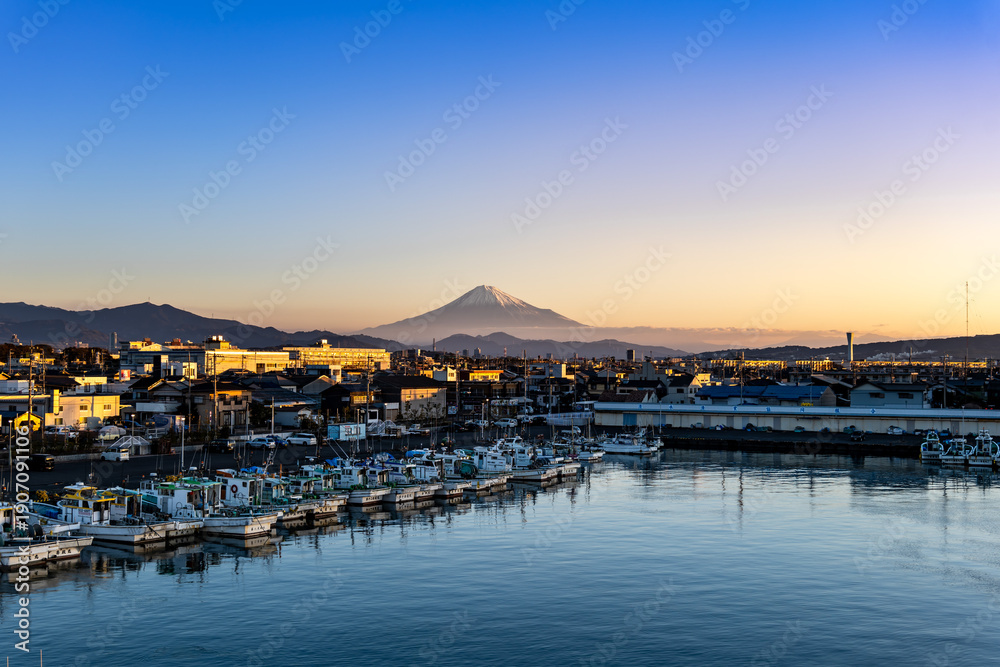 静岡県静岡市にある用宗漁港の見た冬の早朝の富士山 #1907091106