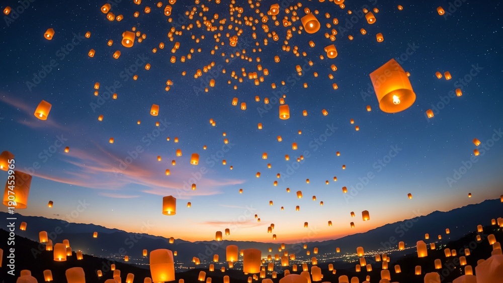 ランタン 夕焼け 夜空 風景 #1907453965