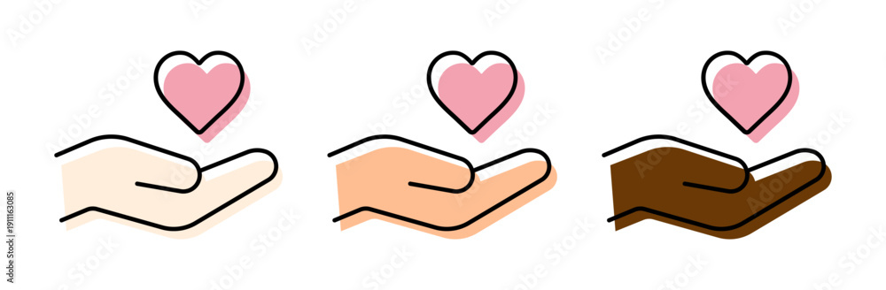 多様性・多国籍を表すハートと手のアイコン 版ズレ風 ピンク #1911163085