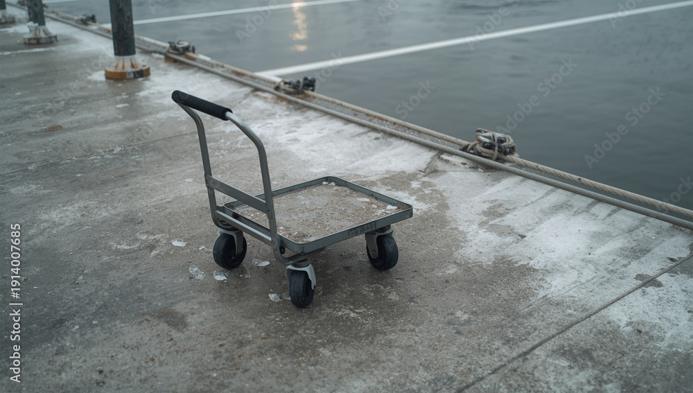 港の岸壁で海風に晒された手押し台車を朝の自然光で記録 #1914007685