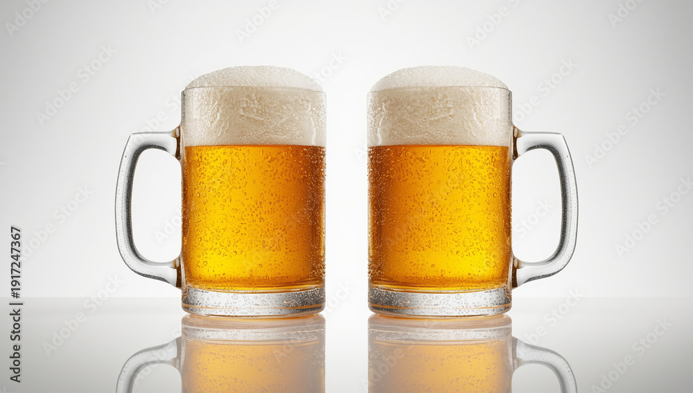 白背景で二つのビールジョッキを並べた乾杯イメージの写真 #1917247367