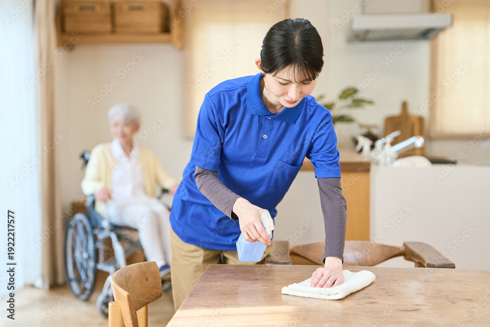 訪問介護で掃除をするアジア人介護士 #1922217577