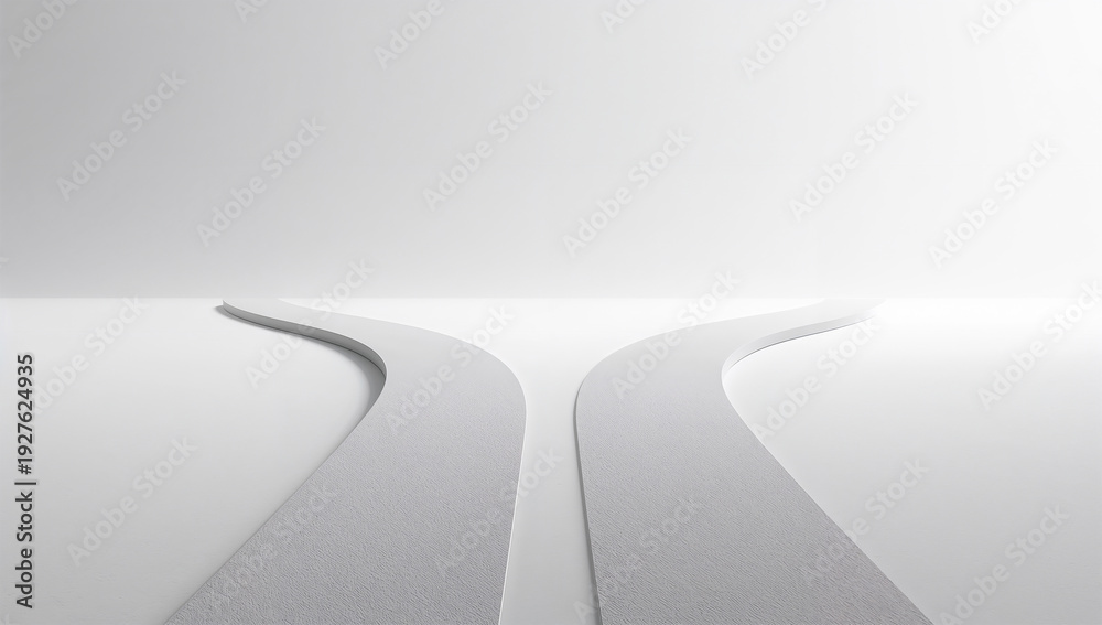 冬の朝光を思わせる白背景の分かれ道コンセプト写真、余白 #1927624935