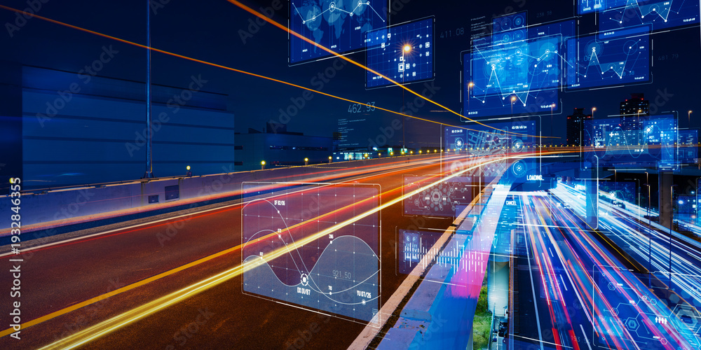 都市の道路とデジタルテクノロジーのコンセプトイメージ #1932846355