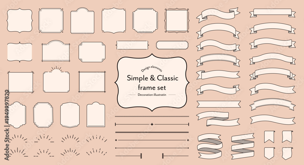 シンプルでクラシックなフレーム・あしらいセット アンティーク リボン 飾り 装飾 ビンテージ 枠 額 #1949997820
