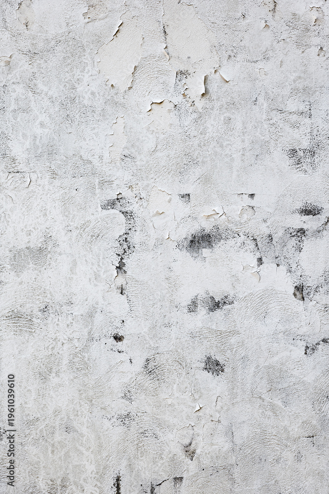 経年変化で剥がれやひび割れが生じた白漆喰壁のヴィンテージな質感テクスチャ #1961039610