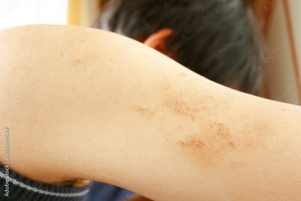 掻きむしり、色素沈着した二の腕 #406336549