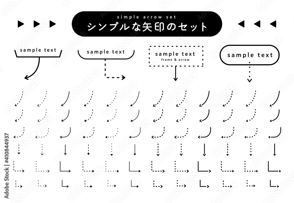 矢印のアイコンのセット/シンプル/やじるし/三角/方向/標識/ベクトル/細い/かわいい/フレーム #410844937