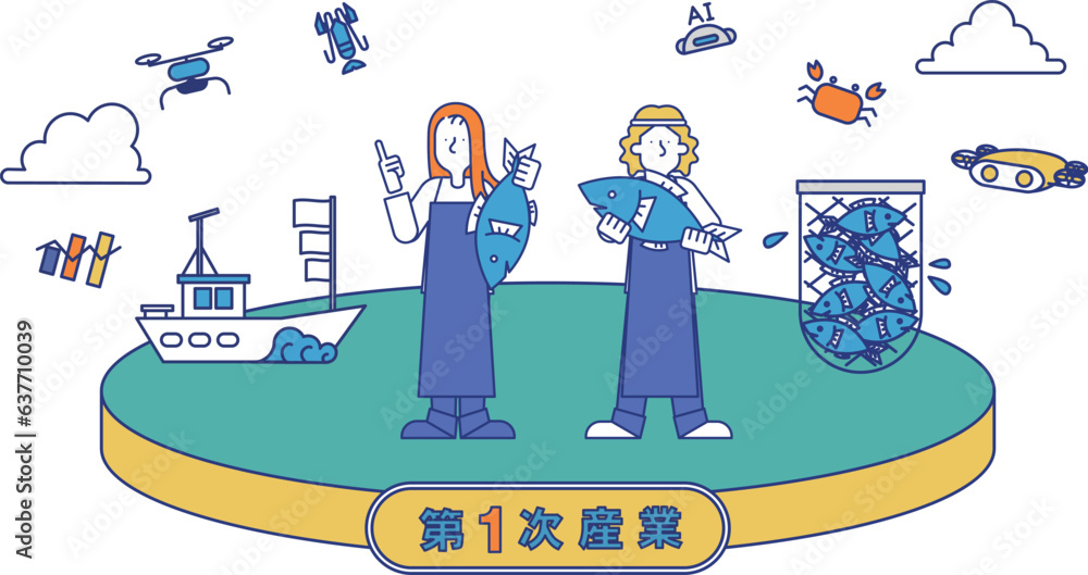 1次産業の漁業に従事する男性女性のイラスト #637710039