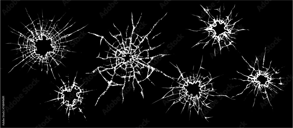 ひび割れガラス弾痕の白ベクターセット #768441691