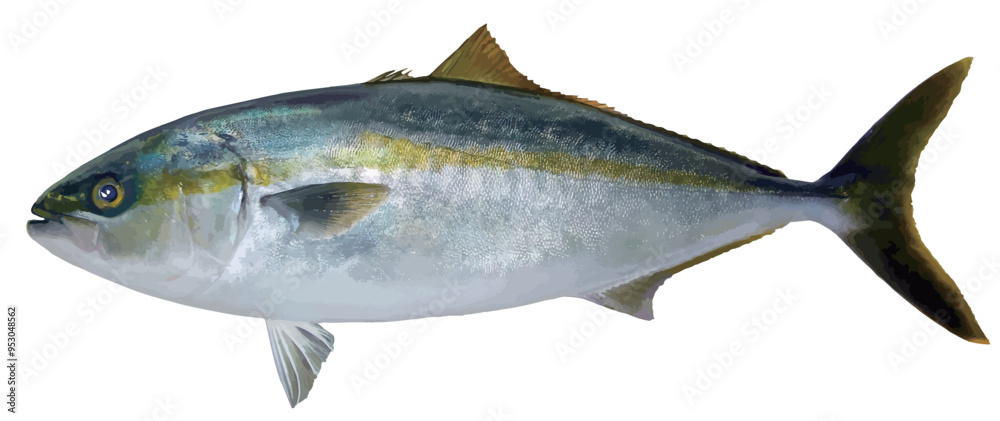 おいしい海水魚・天然ブリの切り抜き白背景リアルタッチイラストレーション #953048562