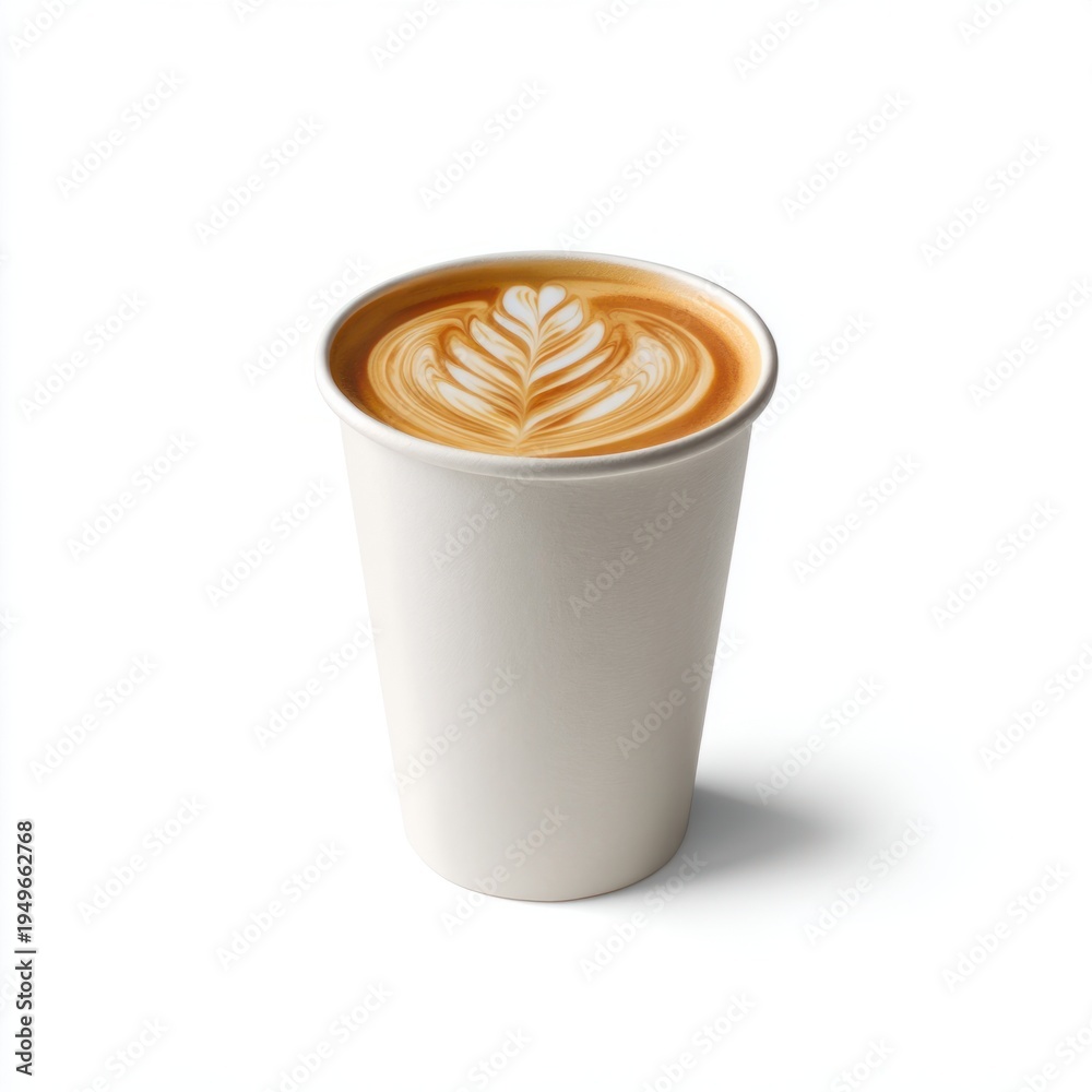 Photograph of an empty white paper cup with a smooth matte texture and a subtle sheen, featuring a slightly tapered cylindrical shape with rounded rim, against a plain white #1949662768
