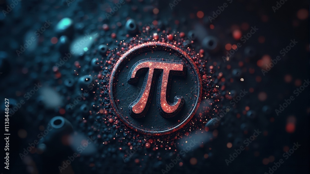 Pi symbol shining over dark abstract surface with red particles #1138448627