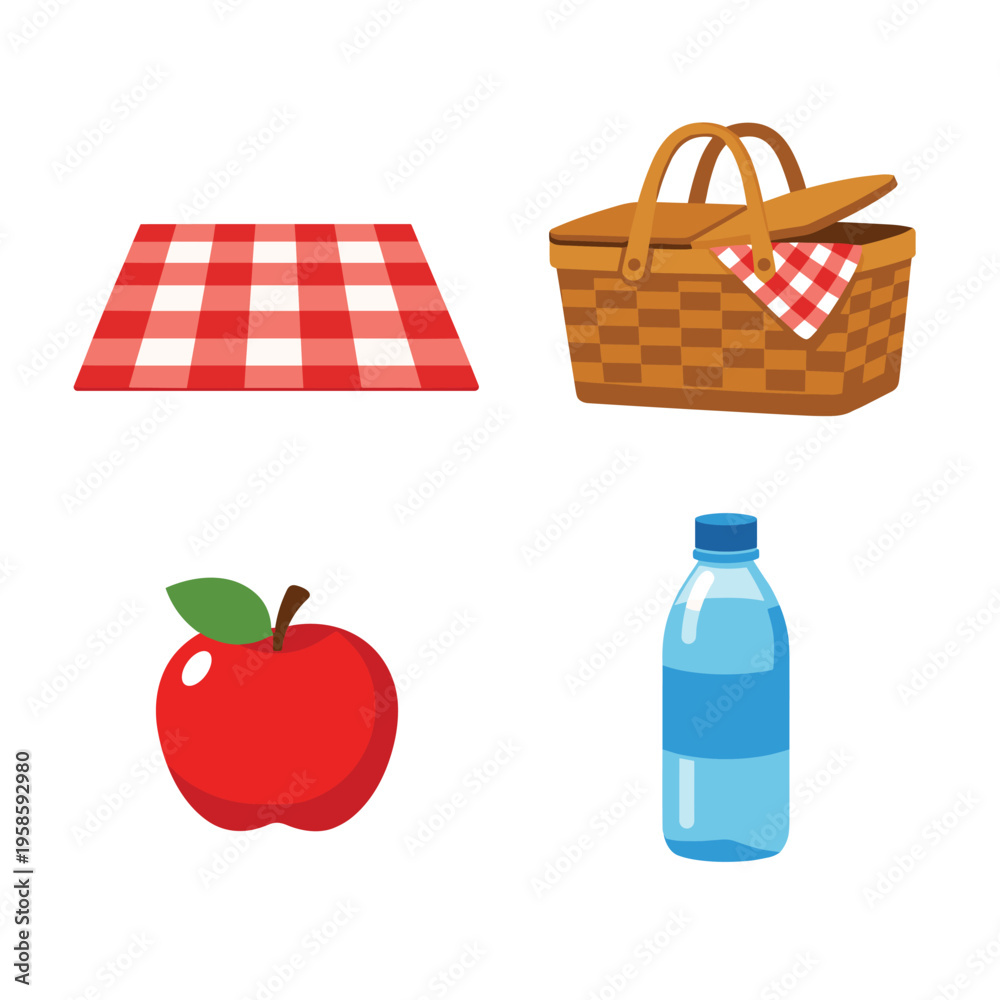 Picnic Essentials Picnic Items With Checkered Blanket #1958592980