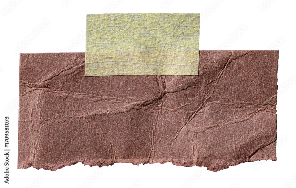 Piece of blank brown paper note with rough fiber texture and adhesive sticky tape with copy space for text, isolated transparent png background design element #1709581073