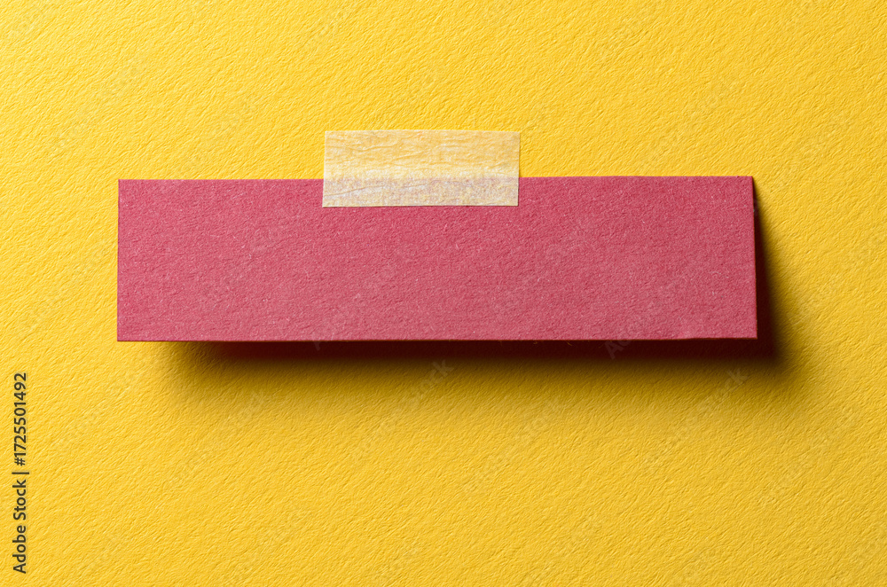 Piece of blank red paper note with adhesive sticky tape and shadow on yellow background #1725501492