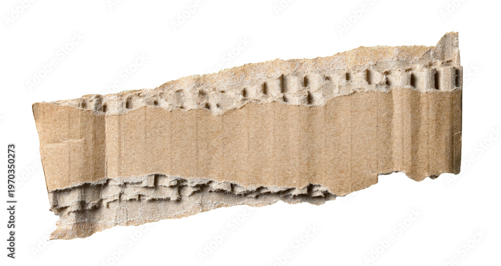 Piece of torn ripped and crumpled brown corrugated cardboard with texture and fine details, transparent png background design element #1970350273