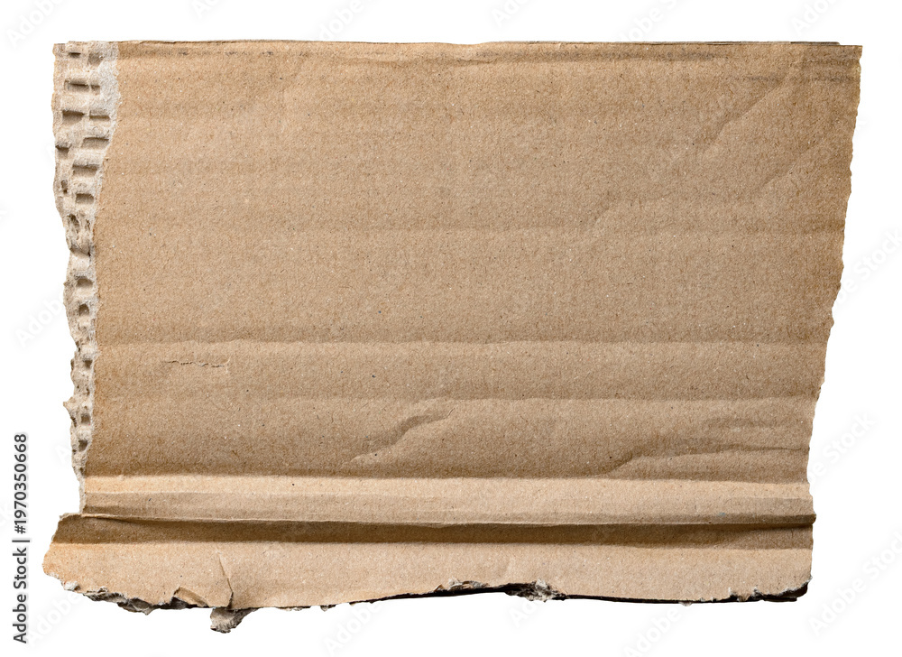 Piece of torn ripped and crumpled brown corrugated cardboard with texture and fine details, transparent png background design element #1970350668