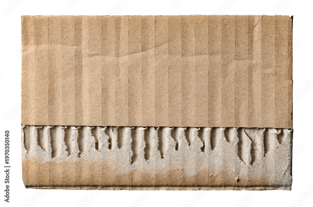 Piece of torn ripped and cut out brown corrugated cardboard with texture and fine details, transparent png background design element #1970350140