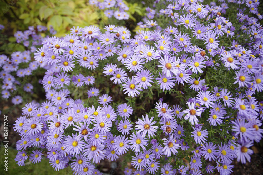 • #124071523 dużo kwiatów - astry w ogrodzie