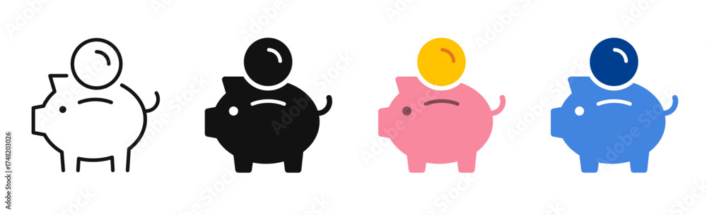 Piggy bank simple icons in line and flat style. Piggybank, baby pig icon. vector #1748203026