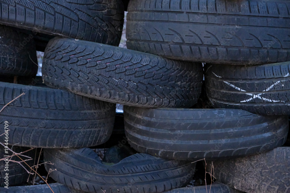pile of black car tyres #1944664709