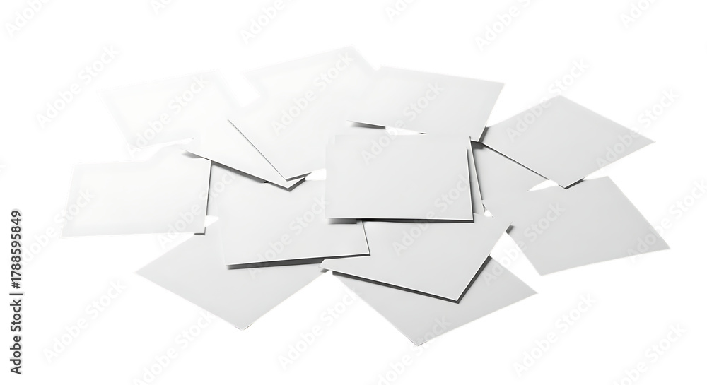 Pile of blank white paper cards scattered and overlapping isolated, image, isolated on white or transparent background, AI #1788595849