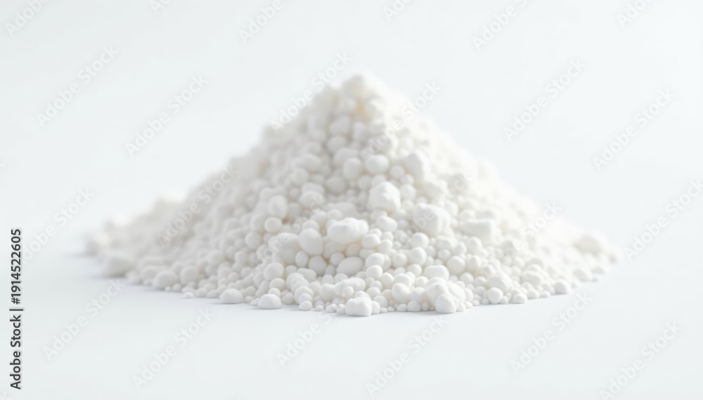 Pile of white granulated sugar on white background, carbohydrate, table sugar #1914522605