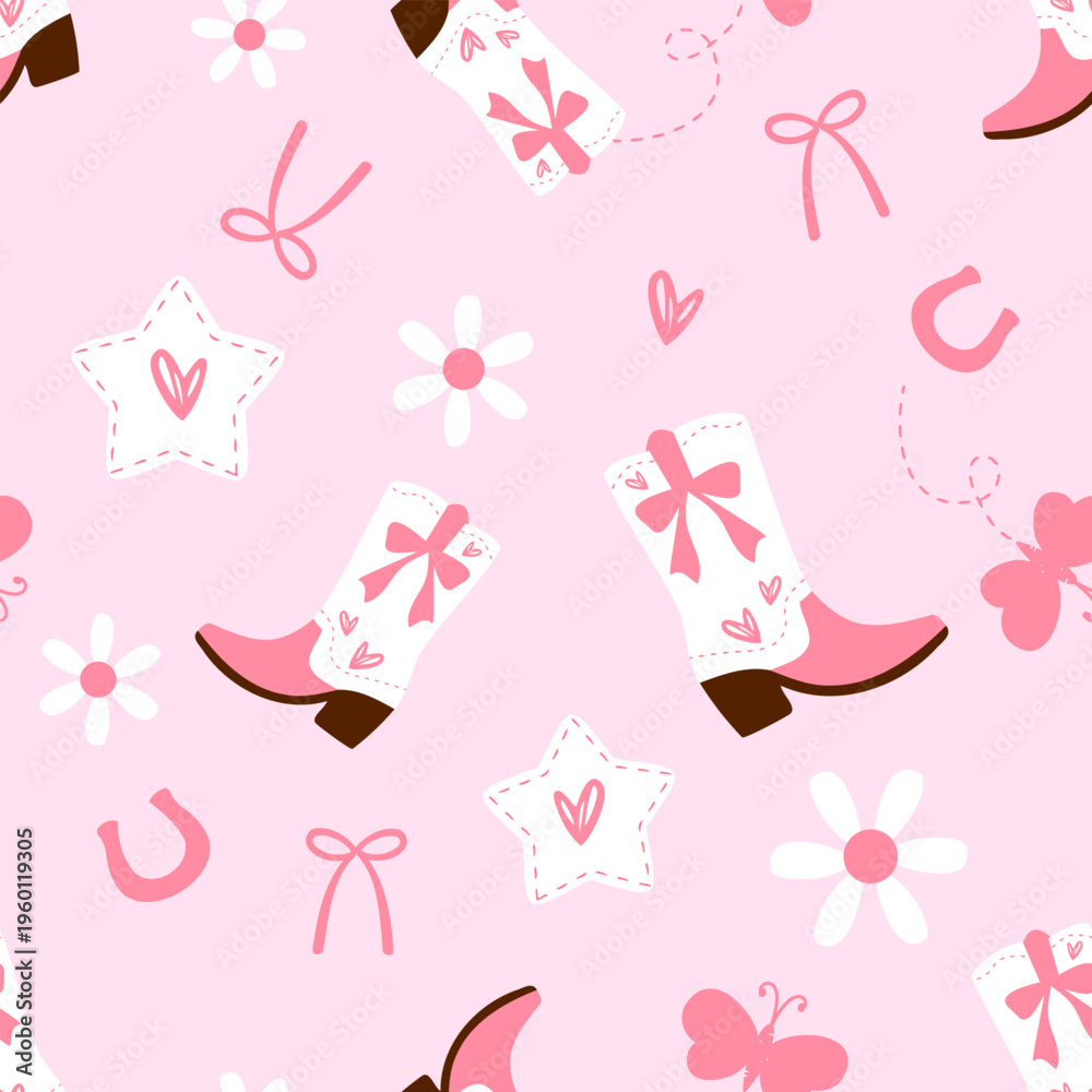 Pink cowboy boots floral seamless pattern cute western girly background design. #1960119305