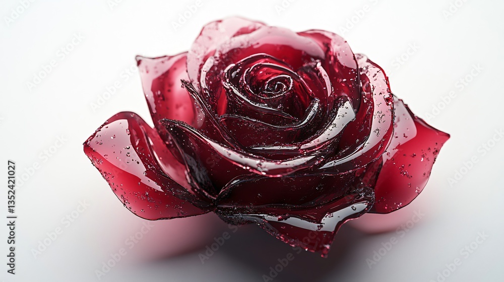 Pink crystal rose shining elegantly under soft light, symbolizing romance, love, and delicate beauty, perfect for jewelry or luxury decor concepts. #1352421027