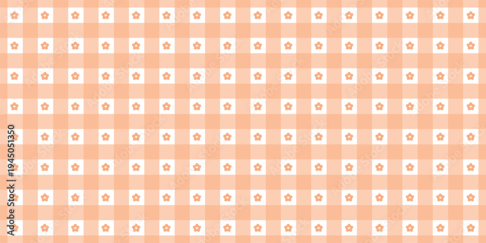 Pink gingham checkered pattern with small Yellow gingham or vichy seamless pattern with daisy flower icons seamless background #1945051350