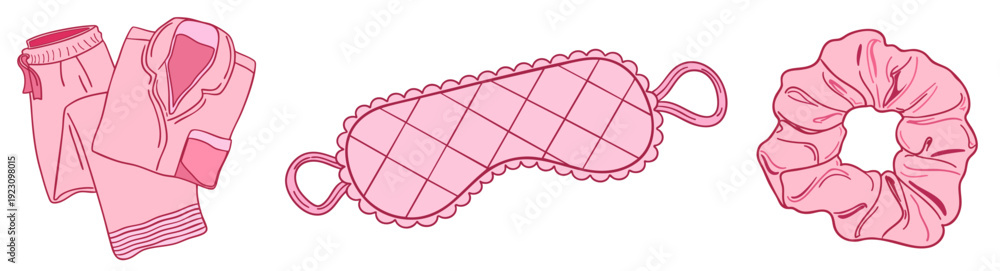 Pink Pastel Sleepover Set, Girls Night Pajamas, Eye Mask and Scrunchie, Bedroom Essentials in Feminine #1923098015