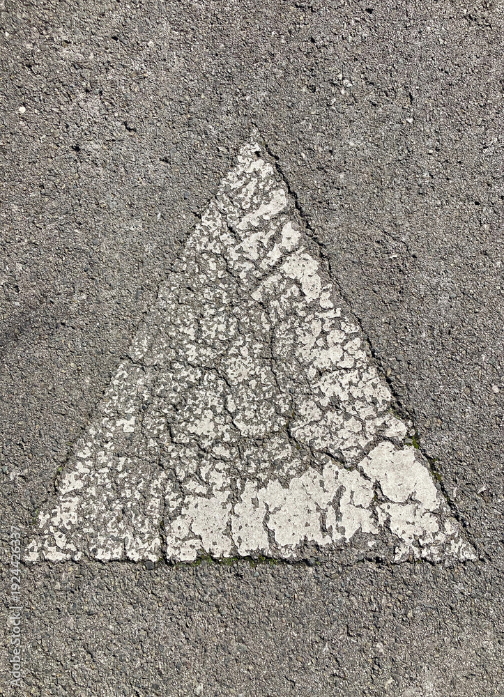 pirámide triángulo señal de tráfico blanca pintada en la carretera agrietada IMG_4416-as26 #1924426337