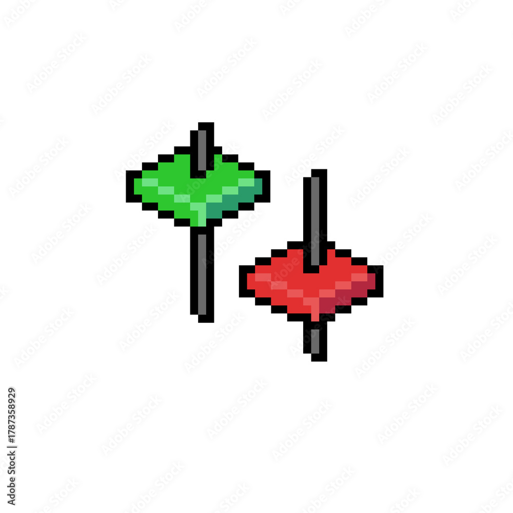 Pixel Art Candlestick Chart Icons.Red and Green Isometric Bars #1787358929