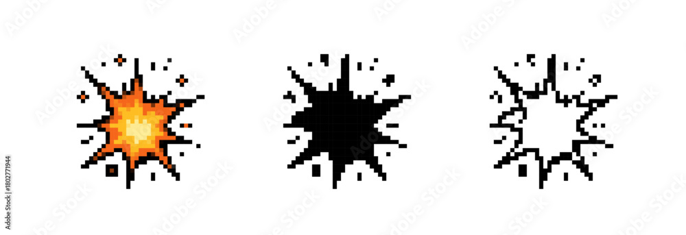 Pixelated Burst Animation Frames in Color Silhouette and Outline Styles for Game Development #1802771944