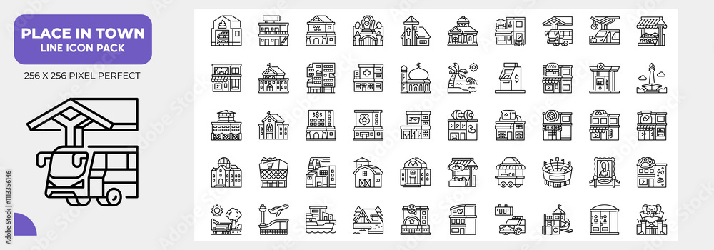 Place In Town Line Icons Pack, Contain Such as Station, Fire Station, Zoo and More #1113356146