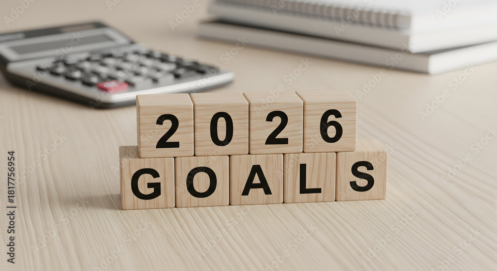 Plan your 2026 goals now for a successful future, visualize your targets and achieve your dreams, make a plan for success, set ambitious goals and stay motivated, wooden blocks #1817756954