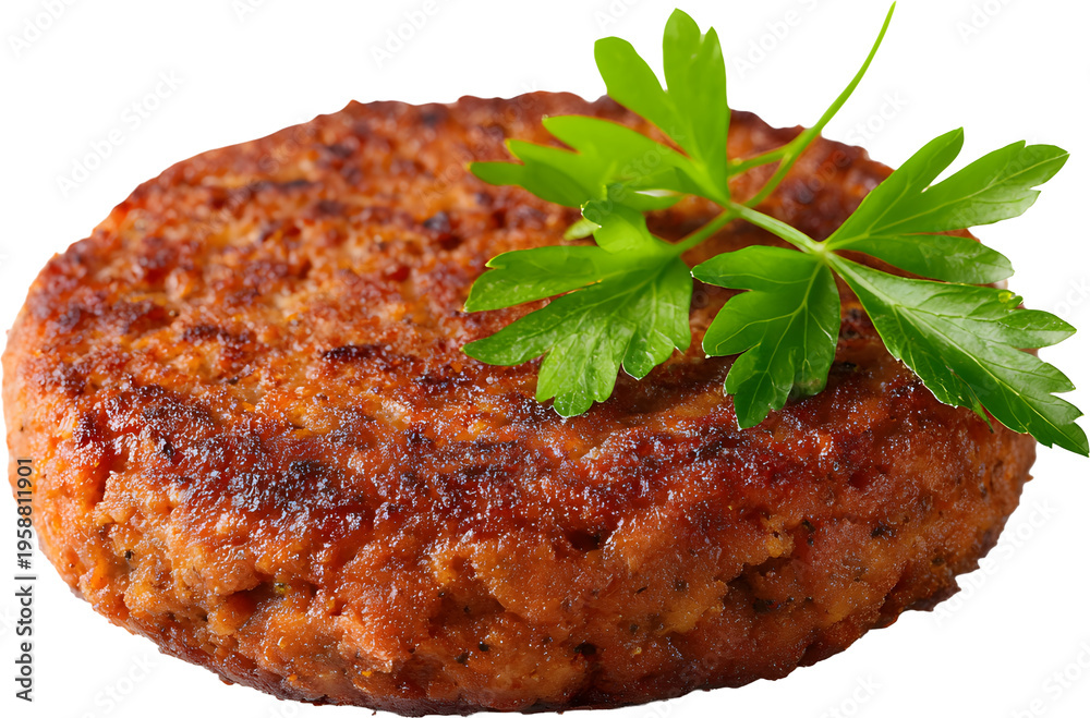 Plant-based burger patty for vegan meat alternative, isolated cutout #1958811901