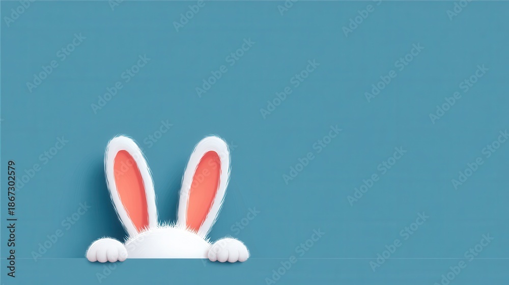 Playful Easter Bunny: A whimsical Easter bunny peeks over a pastel surface, its fluffy ears and tiny paws adding a touch of playful charm to the scene, inviting celebration and joy. #1867302579