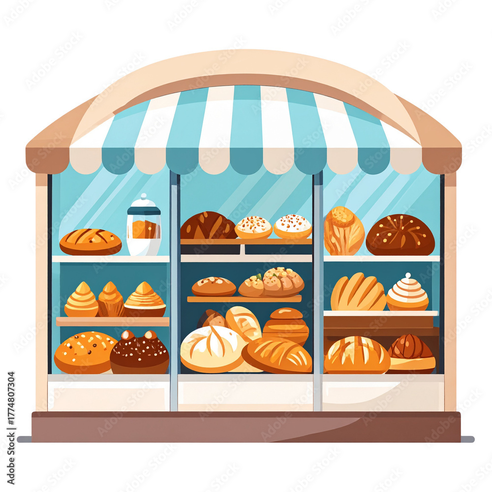 PNG vector of bakery shop window with fresh artisan bread and assorted pastries, detailed transparent design perfect for food, bakery, and culinary projects needing crisp visuals #1774807304
