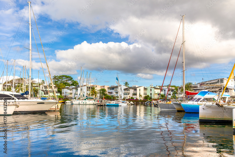 Pointe du Bout marina in Trois Ilets, Martinique, France. The Pointe du Bout is home to a dynamic Creole village, where housing, shops, bars and restaurants mingle. #1779843226