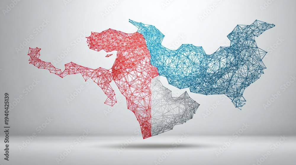 Political map of the Middle East displays connections between the USA and Iran on a white background with space for additional information. #1940425139