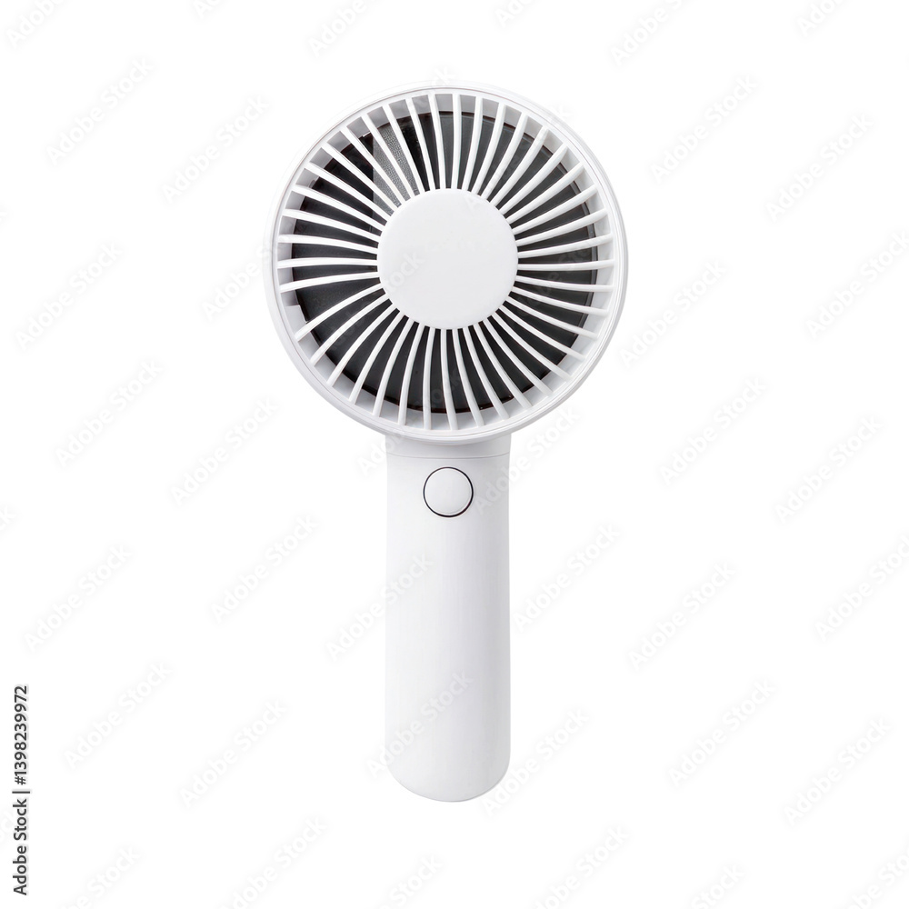 Portable handheld fan home office cutout background computer accessory indoor top view efficient cooling #1398239972